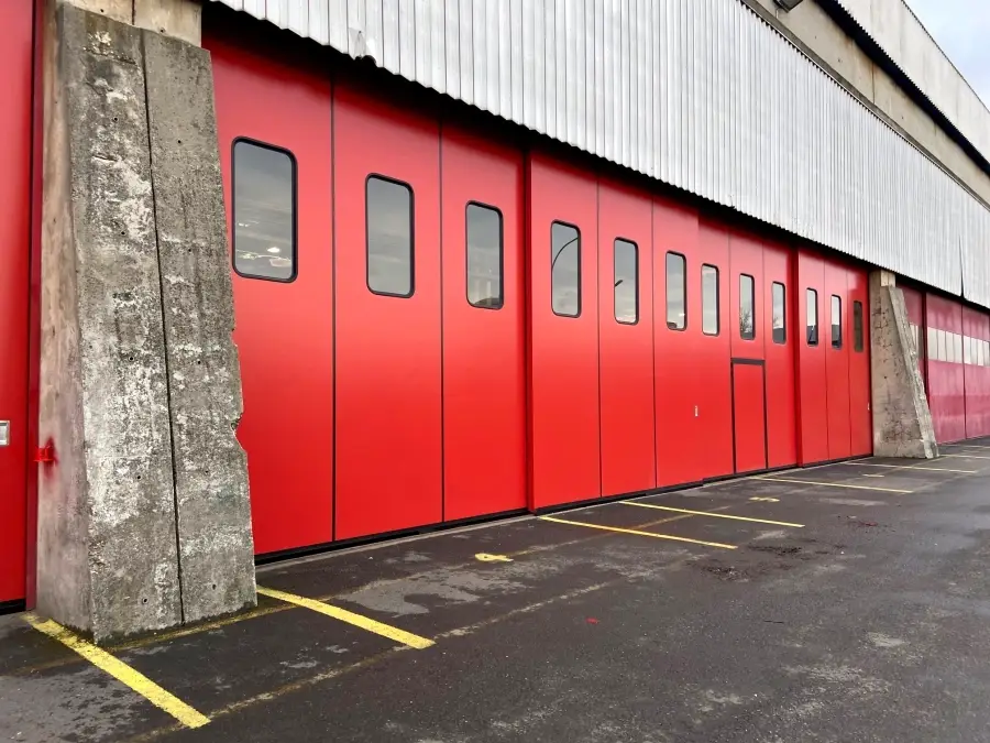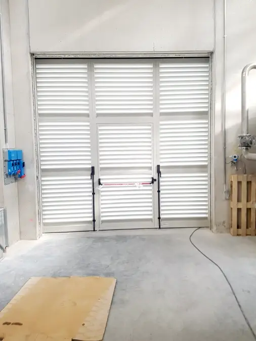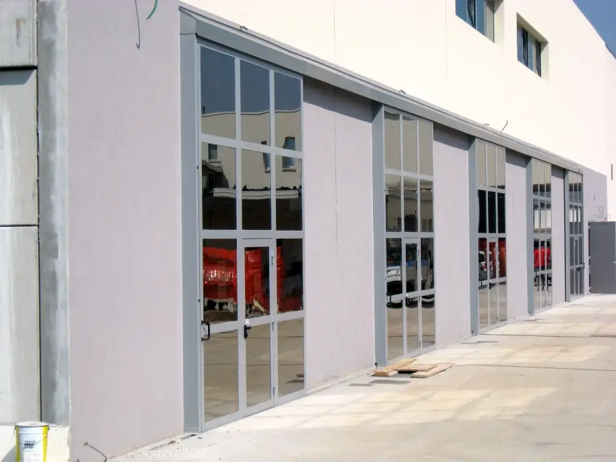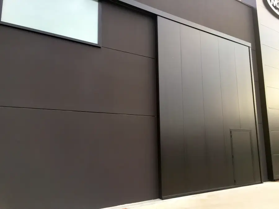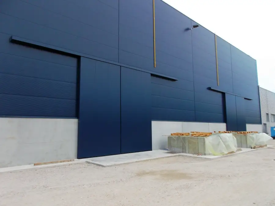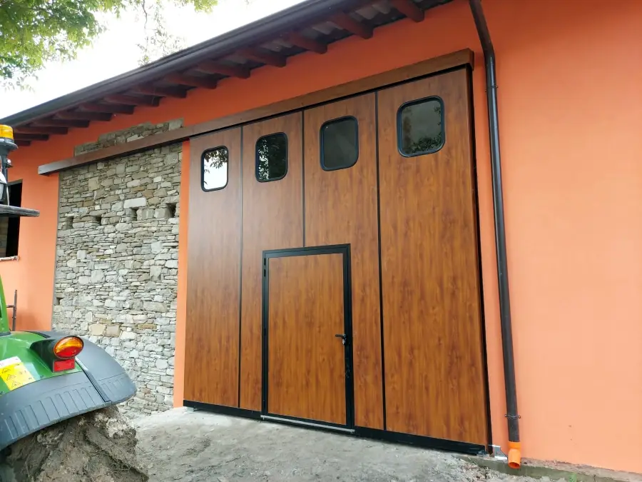 La struttura è realizzata con profili in acciaio ad alta resistenza e pannelli coibentati e rivestiti in lamiera, assicurando un’elevata protezione dagli agenti atmosferici e un ottimo livello di isolamento termico. Le ante scorrono su carrelli rinforzati che garantiscono stabilità e fluidità di movimento anche in presenza di utilizzi intensivi. È possibile integrare finestre, oblò, griglie di aerazione o porte pedonali e u.s. per aumentare funzionalità e sicurezza.